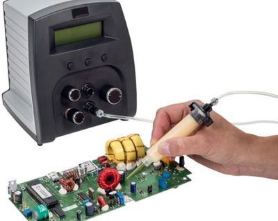 Dispensers can apply all viscosity liquids from thin solvents to thick pastes. Use for a wide range of dispense projects. Common applications include solder paste, fluxes, silicones, gels, UV cure, epoxies, Cyanoacrylate, threadlockers, solvent glues, lubricants and more.